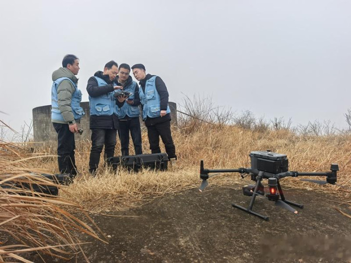 车行至河南省南阳市淅川县盛湾镇姚营村的一处高地,队员们迅速下车组装设备。随着螺旋桨的轰鸣声响起,无人机腾空而起,在119米的高空沿着5.9公里的航线巡航,高清画面实时回传。